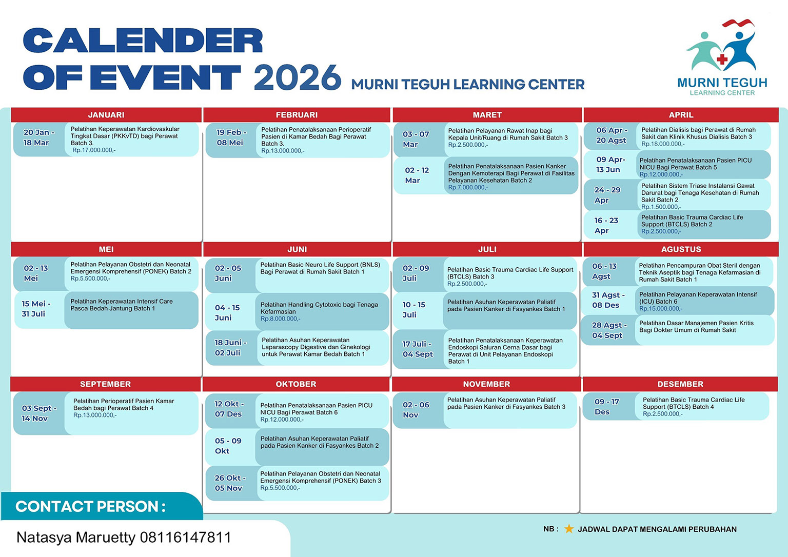 KALENDER PELATIHAN MURNI TEGUH LEARNING CENTER